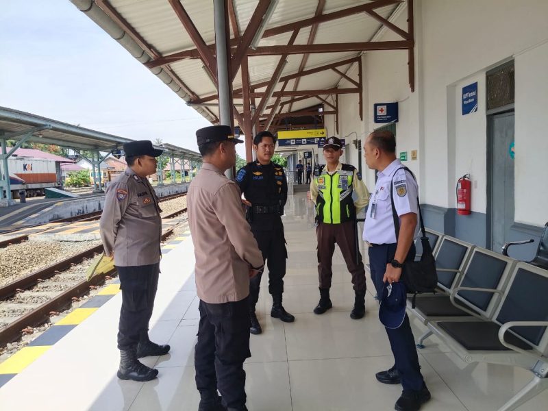 TEBING TINGGI – Kasat Binmas Polres Tebing Tinggi AKP BSM Tarigan diwakili oleh KBO Sat binmas Ipda Joni Zuardi dan personel Aipda Handi Oky Manalu serta Brigadir Mhd Fadhil melaksanakan sambang dan memberikan himbauan kamtibmas kepada Manajer pengamanan drive l kereta api, Agung dan Polsuska kereta api di Stasiun KA Jalan Imam Bonjol Kota Tebing Tinggi, Kamis (17/7/2025).