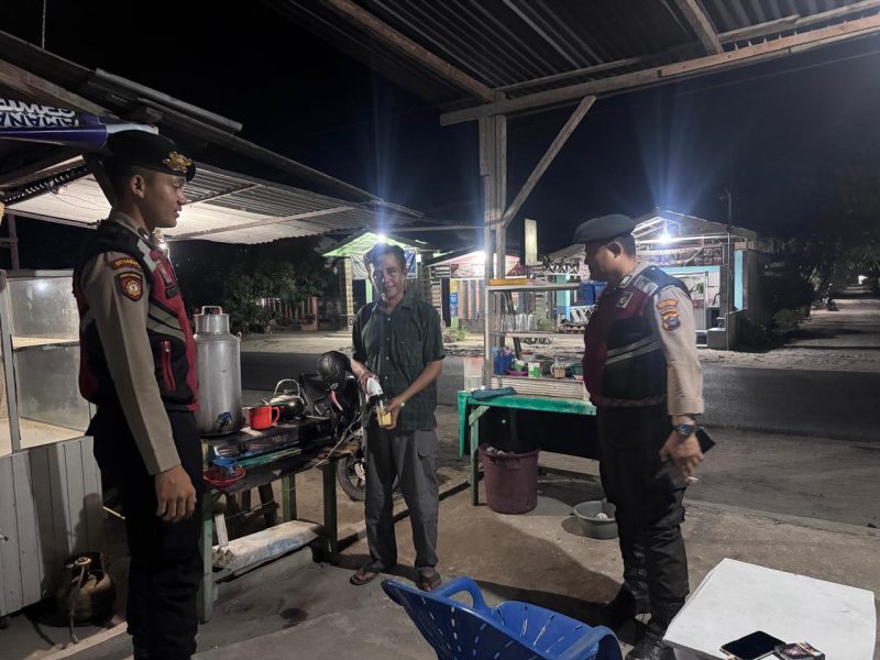 BATUBARA – Personil Sat Samapta Polres Batu Bara, melaksanakan giat Patroli dan Cooling System guna menciptakan Rasa aman, dan menyampaikan himbauan pesan Kamtibmas kepada warga di Warung TST Mas Giman di Kota Lima Puluh, Batu Bara, Sumatera Utara, Jumat (25/7) Pukul.23.30 Wib.