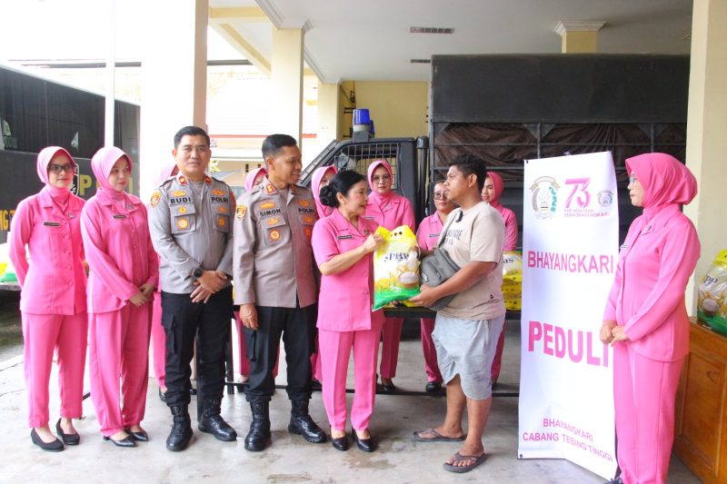 Tampak hadir dalam kegiatan, Wakapolres Tebing Tinggi Kompol Rudi Syahputra, S.Kom, Ketua Bhayangkari PC Tebing Tinggi Ny. Mahdalena Simon Sinulingga dan masyarakat sekitar. (W1).