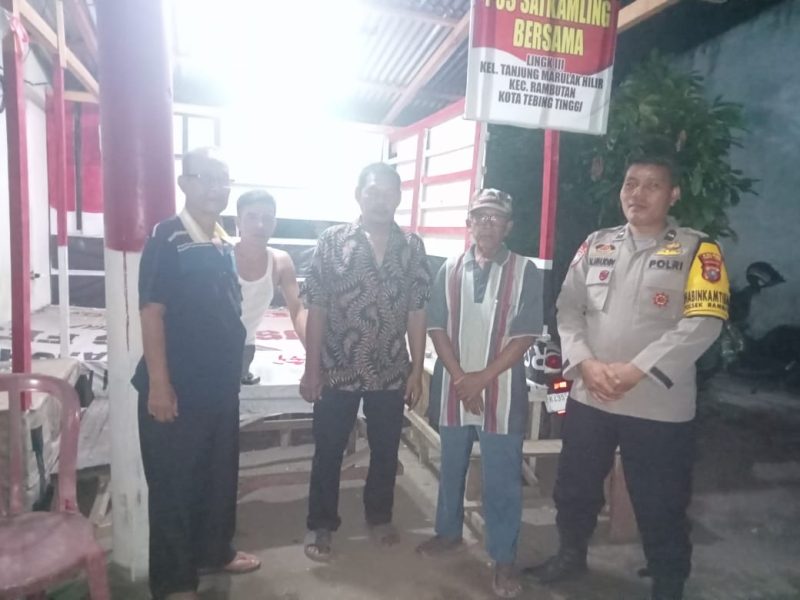 TEBING TINGGI – Bhabinkamtibmas Polsek Rambutan Polres Tebing Tinggi Aiptu H. Hutapea dan Aipda Alimudin melakukan sambang dan pengecekan sekaligus menyampaikan pesan kamtibmas dalam rangka menjaga keamanan dan ketertiban masyarakat yang berlangsung di Pos Sat Kamling Bersama, Kelurahan Tanjung Marulak Kecamatan Rambutan Kota Tebing Tinggi, Kamis malam (18/9/2025).