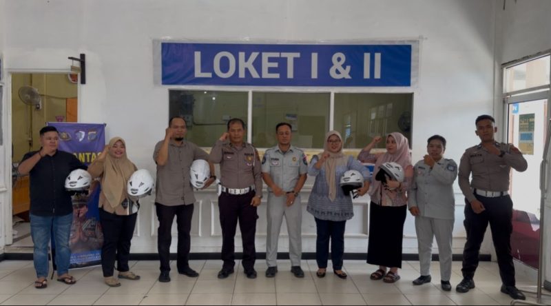 BATU BARA – Dalam rangka memperingati Hari Keselamatan lalulintas, Kasat Lantas AKP Simon E. Simatupang, S.H, M.H, melaksanakan berbagi helm, di Samsat Lima Puluh, Batu Bara, Sumatera Utara, Jumat (19/9) Pukul.14.00 Wib.