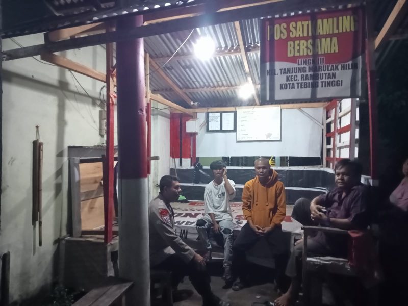 TEBING TINGGI – Bhabinkamtibmas Polsek Rambutan Resor Tebing Tinggi melaksanakan kegiatan sambang dan monitoring ke Pos Sat Kamling Bersama di Lk III, Kelurahan Tanjung Marulak Hilir, Kecamatan Rambutan, Kota Tebing Tinggi pada Jumat malam (26/9/2025).