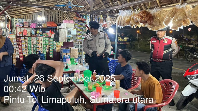 BATU BARA – Personil Sat Samapta Polres Batu Bara melaksanakan Patroli, dan Cooling System dalam mencegah terjadinya aksi 3C dan tindak kejahatan lainnya di Wilayah Hukum Polres Batu Bara. Giat Patroli dilaksanakan dengan menyambangi masyarakat yang berada di Warung Pak Agus tepatnya di Pintu Tol Lima Puluh, Batu Bara, Sumatera Utara, Jumat (26/9) Pukul.00.30 Wib.