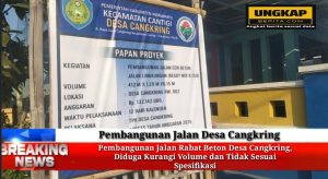 Ungkap erita.com | Indramayu – Pembangunan jalan rabat beton di Desa Cangkring, Kecamatan Cantigi, Kabupaten Indramayu, Jawa Barat diduga volumenya dicurangi dan tidak sesuai spesifikasi.