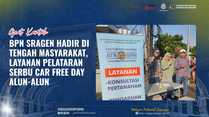 Kehadiran gerai PELATARAN ini merupakan bagian dari upaya Kantor Pertanahan Kabupaten Sragen dalam menghadirkan pelayanan yang responsif, terbuka, dan mudah dijangkau. Melalui pendekatan jemput bola ini, diharapkan kesadaran hukum pertanahan semakin meningkat dan kepercayaan masyarakat terhadap pelayanan pertanahan terus terbangun.