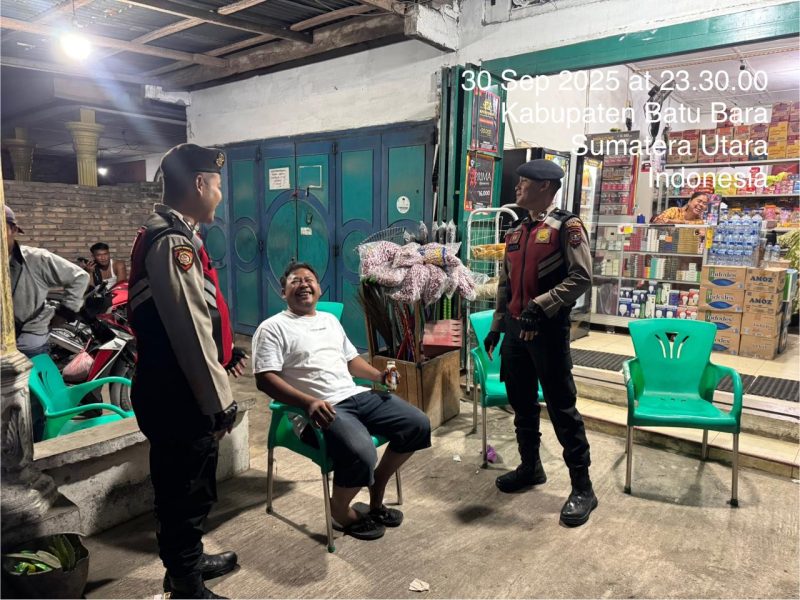 BATU BARA – Personil Sat Samapta Polres Batu Bara melaksanakan Patroli, dan Cooling System dalam mencegah terjadinya aksi 3C dan tindak kejahatan lainnya di Wilayah Hukum Polres Batu Bara. Giat Patroli dilaksanakan dengan menyambangi masyarakat yang berada di Warung Desa Mangkai Baru, Lima Puluh , Batu Bara, Sumatera Utara, Selasa (30/9) Pukul.23.30 Wib.