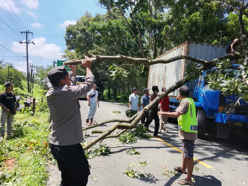 Halangi Jalan, Polsek Dolok Merawan Evakuasi Cabang Pohon yang Patah