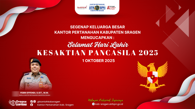 Kepala Kantor Pertanahan Kabupaten Sragen Febri Effendi, S.SiT., M.M. beserta jajaran mengucapkan :