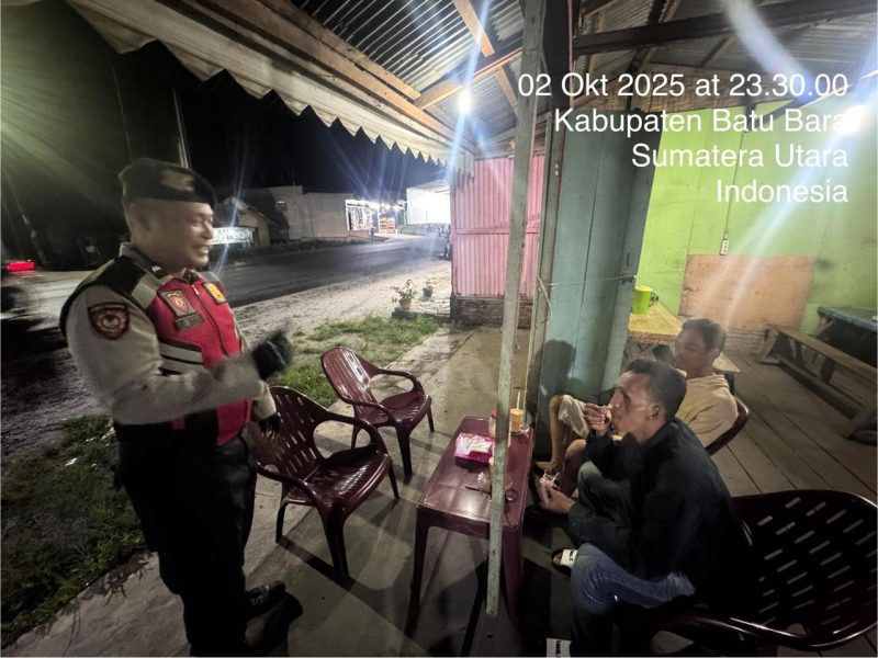 BATU BARA – Personil Sat Samapta Polres Batu Bara melaksanakan Patroli, dan Cooling System dalam mencegah terjadinya aksi 3C dan tindak kejahatan lainnya di Wilayah Hukum Polres Batu Bara. Giat Patroli dilaksanakan dengan menyambangi masyarakat yang berada di Kedai TST Lima Puluh, Batu Bara, Sumatera Utara, Kamis (2/10) Pukul.23.30 Wib.