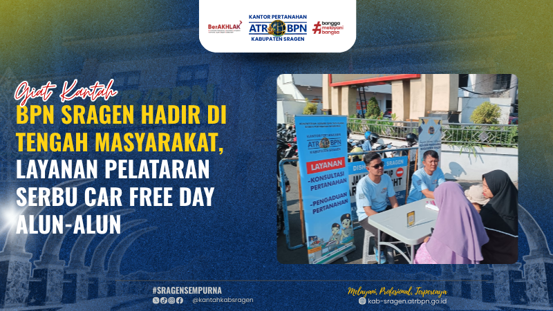 SRAGEN – Dalam rangka meningkatkan kualitas dan akses pelayanan kepada masyarakat, Kantor Pertanahan Kabupaten Sragen kembali menggelar layanan PELATARAN (Pelayanan Pertanahan Akhir Pekan) pada Minggu (12/10).