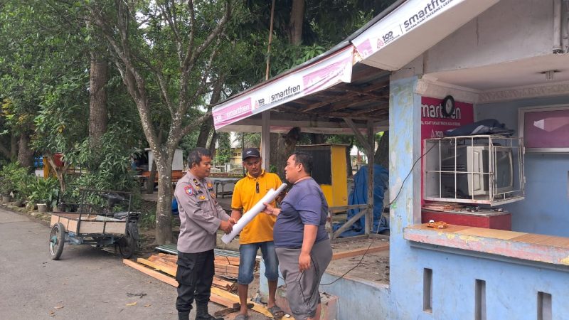 TEBING TINGGI – Kasat Binmas Polres Tebing Tinggi AKP BSM Tarigan bersama Kanit Binkamsa Ipda J. Tambun dan Aipda J. Gultom memeriksa dan mengecek pembenahan pos kamling sebagai bagian dari upaya menjaga keamanan lingkungan yang berlangsung di Pos Kamling Kelurahan Tanjung Marulak Kota Tebing Tinggi, Jumat (17/10/2025).