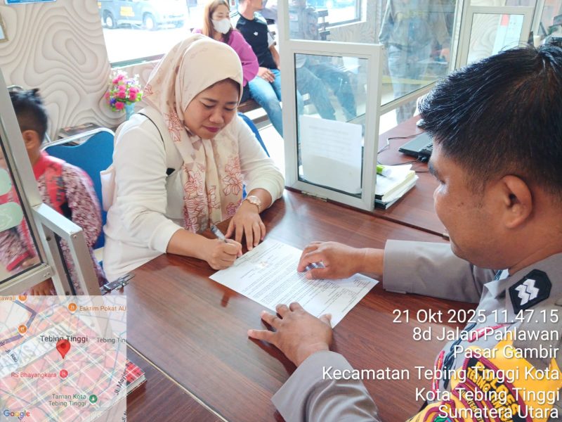 TEBING TINGGI – Pamapta Polres Tebing Tinggi memfasilitasi kegiatan problem solving atau mediasi terhadap permasalahan warga yang terlibat kasus penganiayaan. Mediasi dilaksanakan oleh Aiptu Frenki Lumbantoruan selaku Pamapta 1 SPKT Polres Tebing Tinggi, bersama Aipda Ridwan Sahri dan Brigadir Erik Sugiarto, Selasa (21/10/2025).