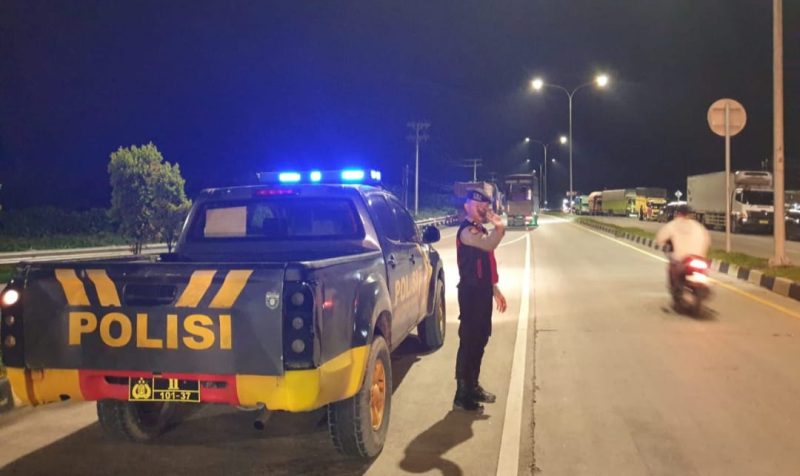 BATU BARA – Personil Polres Batu Bara, melaksanakan giat Patroli Roda-4 guna mengantisipasi terjadinya Begal, balap liar, aksi 3C , perjudian, prostitusi, dan kejahatan lainnya di Perlintasan Exit Tol Lima Puluh, Batu Bara, Kamis (23/10) Pukul.21.30 Wib.