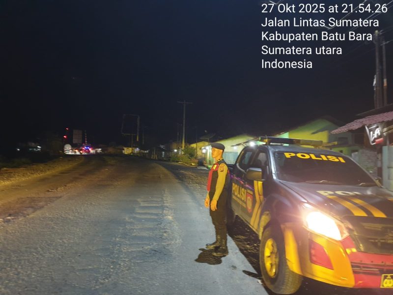 BATU BARA – Personil Sat Samapta Polres Batu Bara, melaksanakan giat Patroli Roda-4 guna mengantisipasi terjadinya Begal, balap liar, aksi 3C , perjudian, prostitusi, dan kejahatan lainnya di Perlintasan Simpang Rel Pontas, Lima Puluh, Batu Bara, Senin (27/10) Pukul.21.30 Wib.