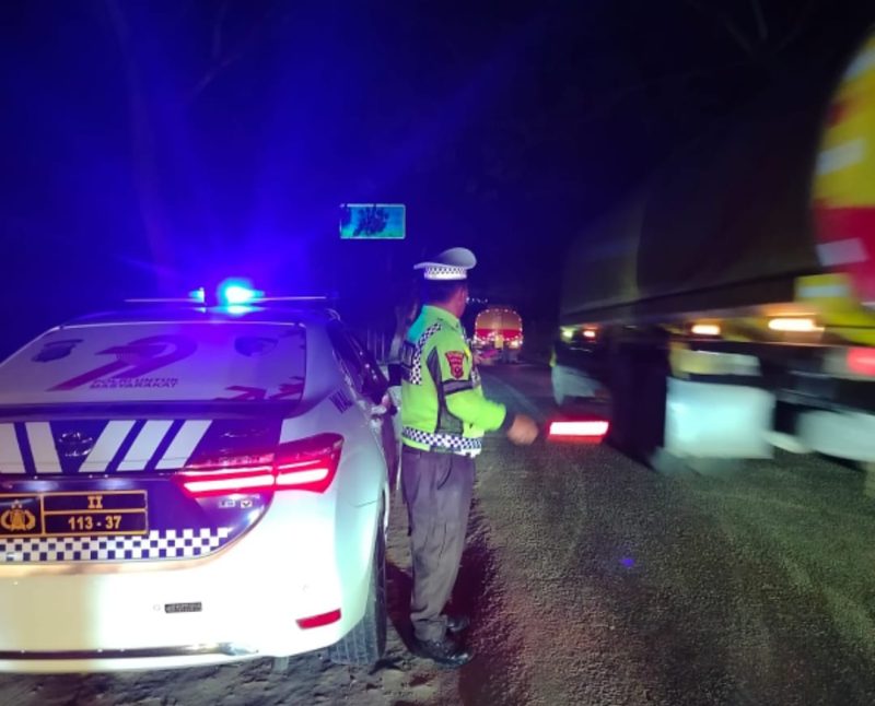 BATU BARA – Personil Satuan Lalu Lintas Polres Batu Bara melaksanakan Patroli Blue Light guna upaya pencegahan terjadinya Kemacetan, Kecelakaan lalu lintas, dan balap liar serta Kejahatan Jalanan, dengan menyusuri lokasi disekitaran Jalinsum, Selasa (28/10) Pukul.00.00 Wib.