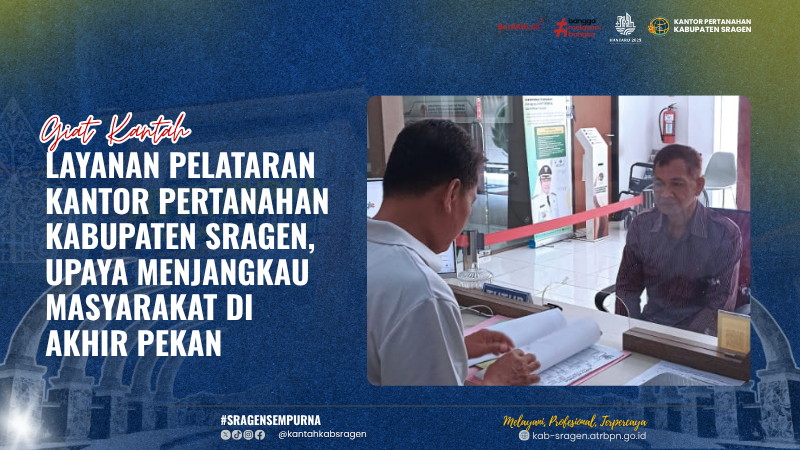 Kehadiran layanan PELATARAN merupakan bentuk nyata komitmen Kantor Pertanahan Kabupaten Sragen dalam memberikan pelayanan yang cepat, tepat, dan akuntabel, sekaligus memperluas jangkauan waktu pelayanan demi kemudahan masyarakat.