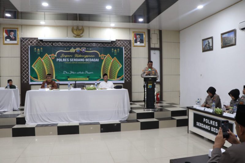 Kegiatan yang dipimpin Kapolres Sergai, AKBP Jhon Sitepu, SIK, MH, yang diwakilkan Wakapolres Kompol Rudy Candra, SH, MH, dihadiri Tim Safari Polda sumut Kompol Mitha Natasya, SH, SIK, Beserta Aggota, para pejabat utama Polres Sergai, unsur, tokoh agama, tokoh masyarakat, serta berbagai organisasi kemasyarakatan di Kabupaten Sergai, Sumatera Utara, Selasa (4/11).