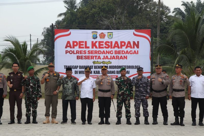 SERGAI,  – Polres Serdang Bedagai (Sergai) menggelar Apel Kesiapan dalam rangka Tanggap Darurat Bencana Hidrometeorologi. Apel ini dipimpin langsung Kapolres AKBP Jhon Sitepu, S.Ik, M.H, di Lapangan Apel Mako Polres Sergai Jalan Negara Sei Rampah, Sergai, Sumatera Utara, Rabu (5/11) Pukul.09.00 Wib.