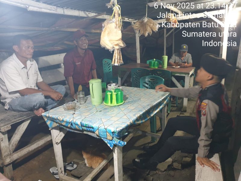 BATU BARA – Personil Sat Samapta Polres Batu Bara melaksanakan Patroli, dan Cooling System dalam mencegah terjadinya aksi 3C dan tindak kejahatan lainnya di Wilayah Hukum Polres Batu Bara. Giat Patroli dilaksanakan dengan menyambangi masyarakat yang berada di Warung Kak Ati Lima Puluh, Batu Bara, Sumatera Utara, Kamis (6/11) Pukul.23.00 Wib.