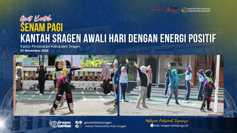 Sragen – Kantor Pertanahan Kabupaten Sragen mengawali hari dengan senam pagi bersama pada Jumat, 07 November 2025, bertempat di halaman kantor mulai pukul 07.00 WIB.